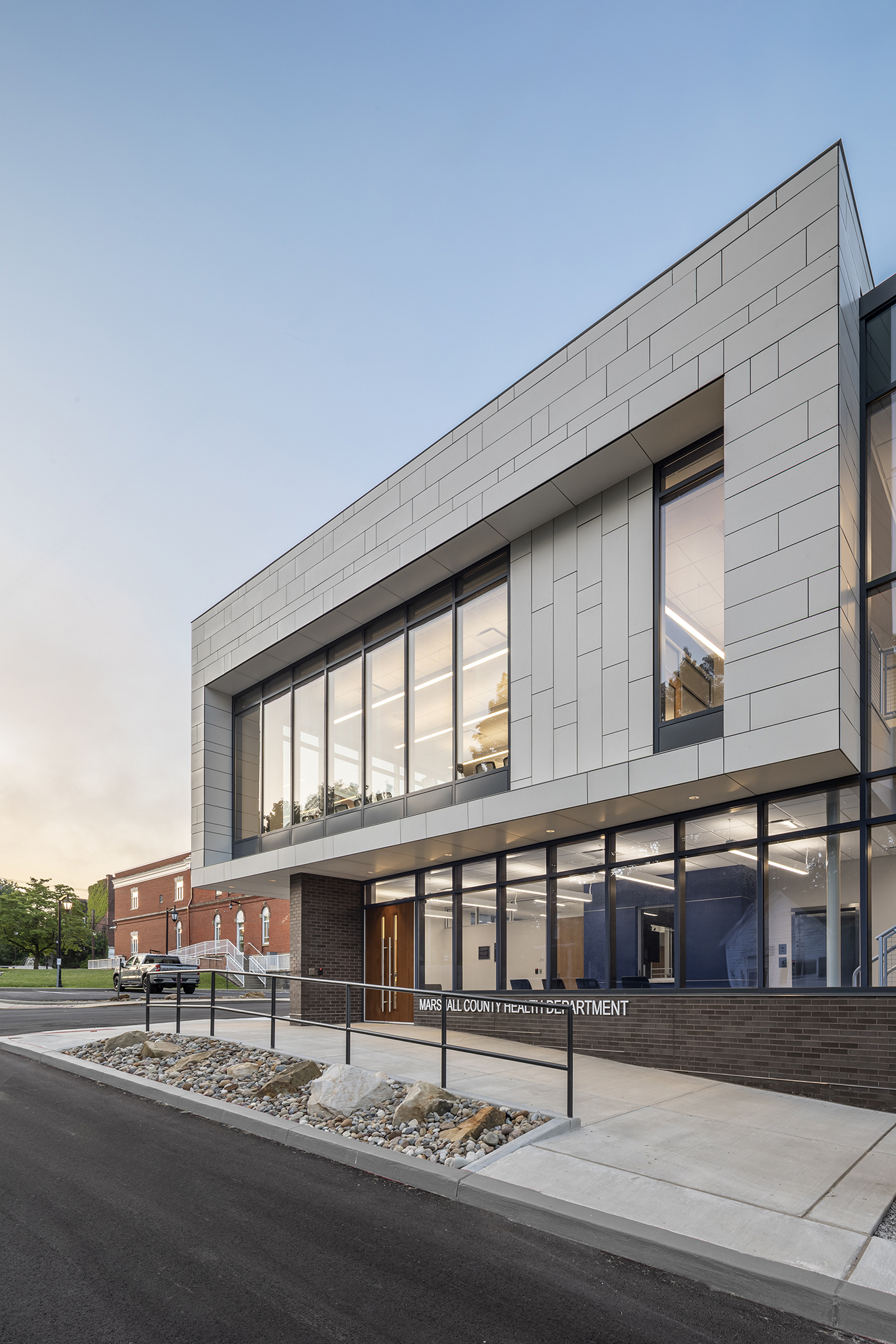 The Marshall County Health Department was outgrowing their 1955 facility and could not satisfy the space and operational needs of a modern-day health department. In addition, the COVID-19 pandemic introduced a new set of challenges to local health departments, which was their lack of storage space and a place for drive-thru testing.